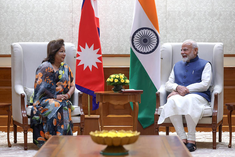 काठमाडौँ । भारतको औपचारिक भ्रमणका क्रममा नयाँ दिल्लीमा रहेकी परराष्ट्रमन्त्री डा. आरजु राणा देउवाले सोमबार साँझ भारतीय प्रधानमन्त्री नरेन्द्र मोदीसँग शिष्टाचार भेट गरेकी छिन् । सो भेटका क्रममा नेपाल–भारत बहुआयामिक सम्बन्धका विविध पक्ष तथा दुई देशको आपसी हित र सरोकारका विषयमा कुराकानी भएको नयाँदिल्लीस्थित नेपाली दूतावासले जनाएको छ ।