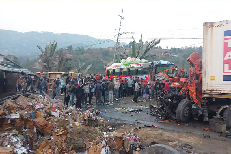 उक्त दुर्घटनामा स्कुल बससहित चारवटा बस, दुईवटा ट्रक र एउटा मोटरसाइकल परेका छन् ।